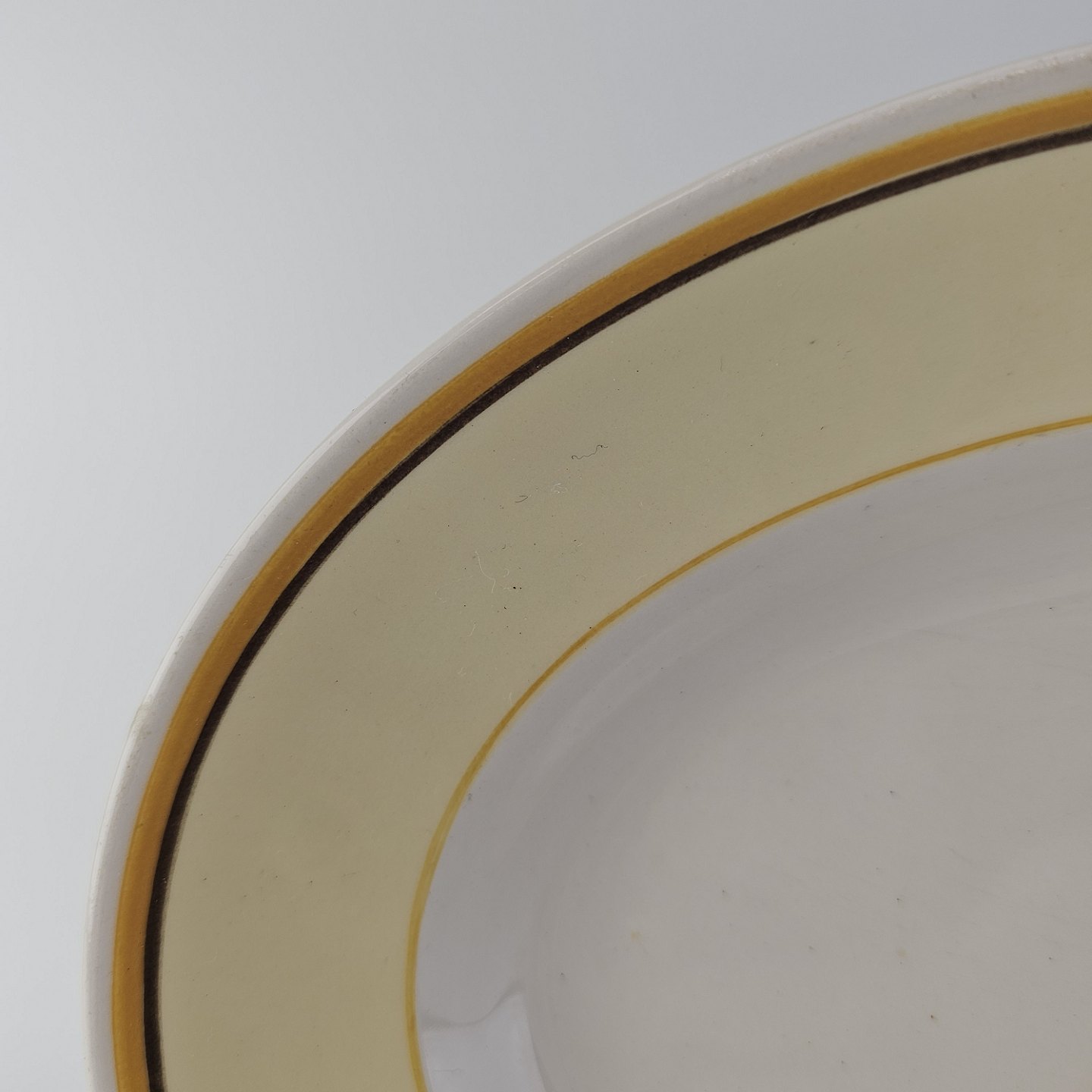 Ovalt fad i fajance fra stellet Margrethe fremstillet i perioden 1937-1940.