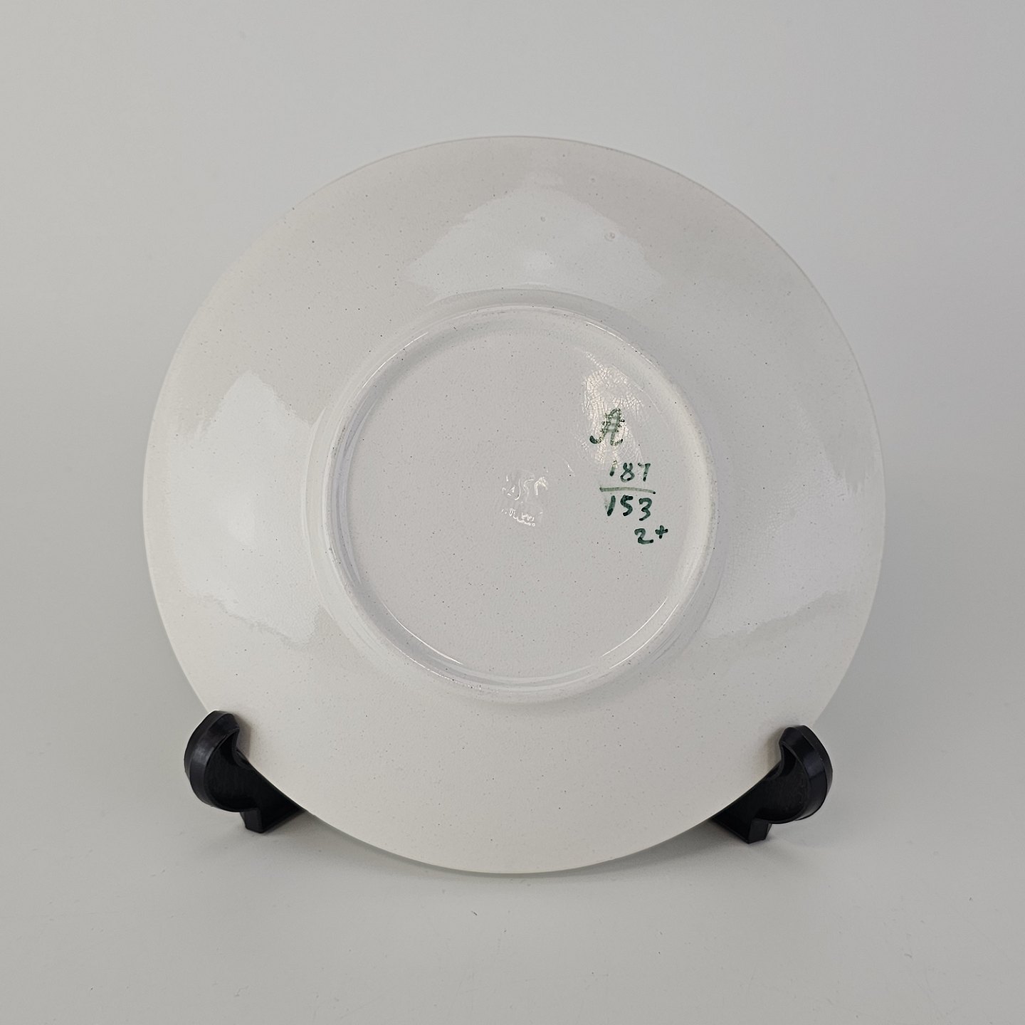 Kop med underkop i hvid fajance fra stellet Blå Cenerarier