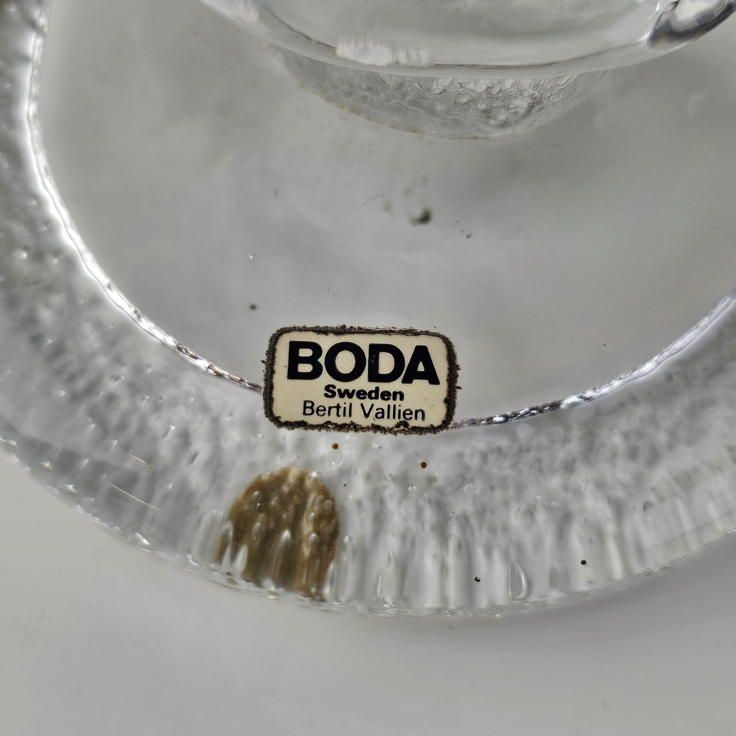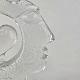 Skulptur i glas med motiv af et menneske i profil, en fugl og et hjerte