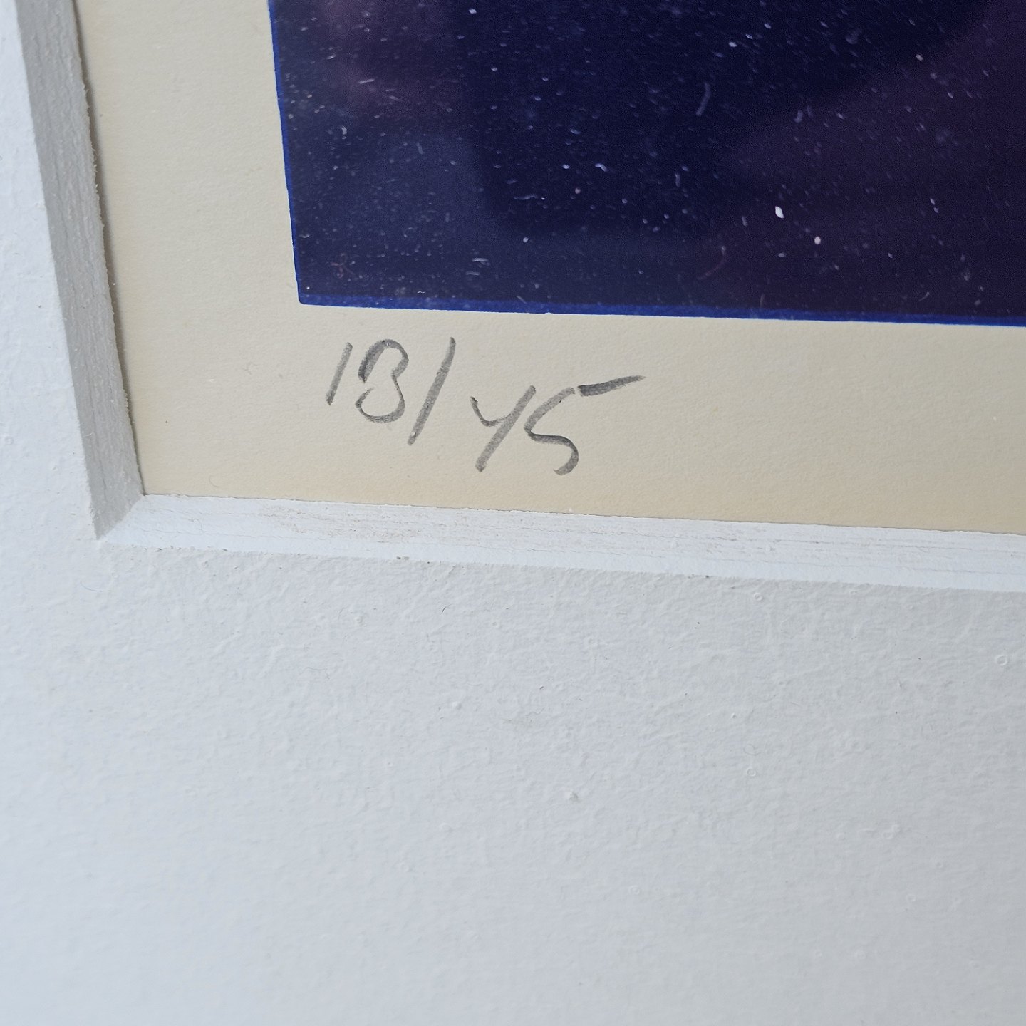 Litografi i rød og mørkeblå i metal ramme. 13/45