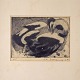 Litografi fra 1967 i passepartout ramme med sort hvidt naturmotiv af to fugle