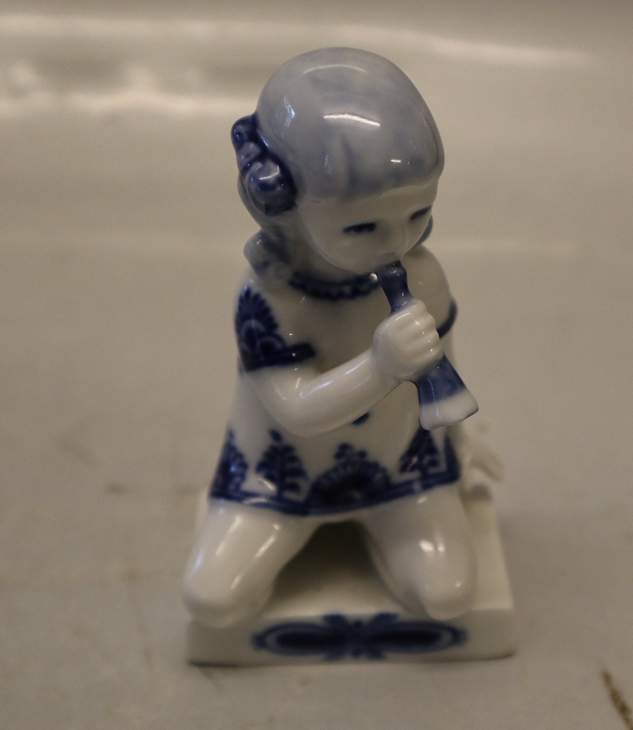 Blue Fluted Danish Porcelain 4796 RC Blue Flower girl with trumpet Hanne Varming 10 cm