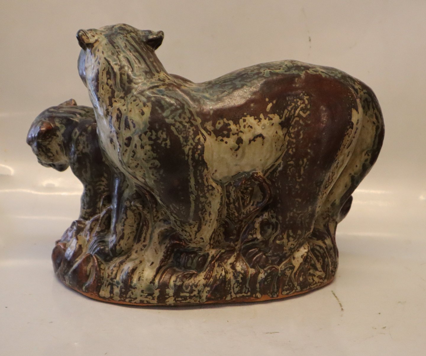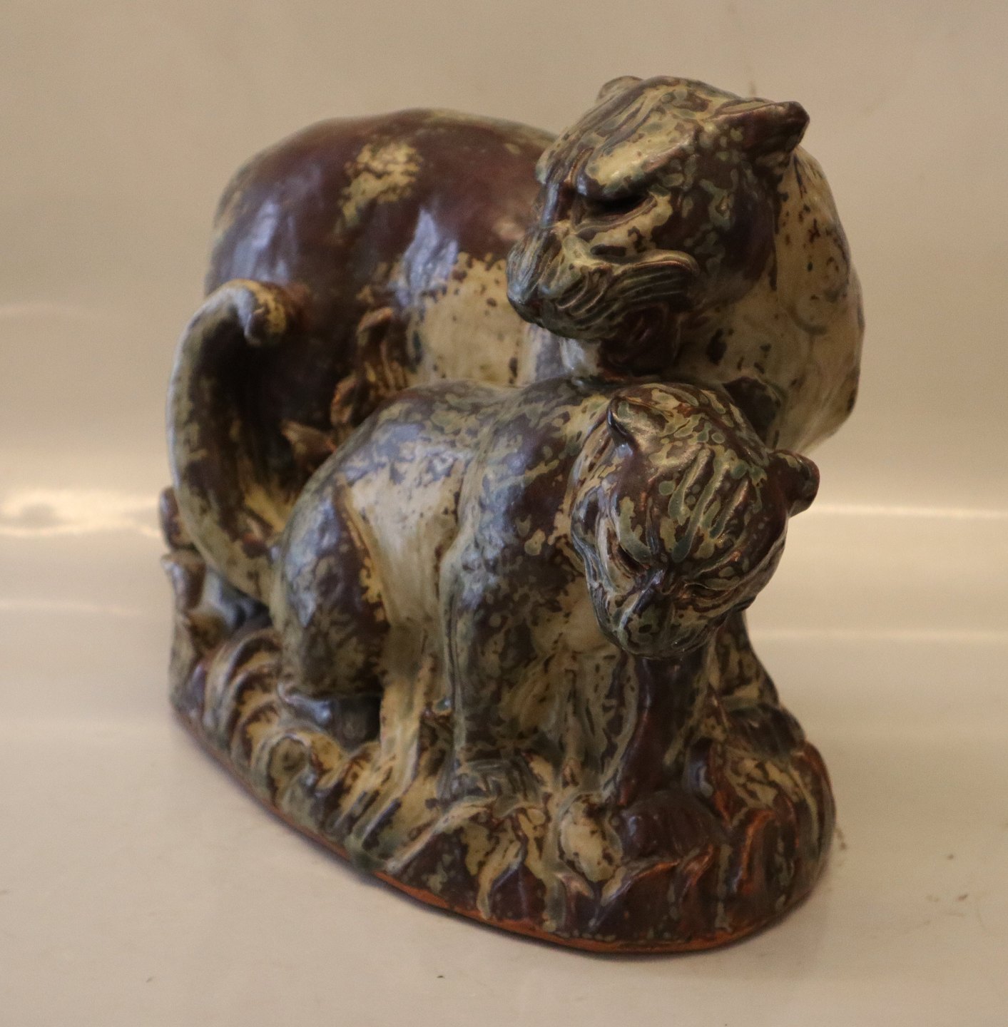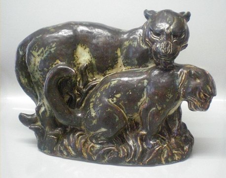 Royal Copenhagen stentøj 20263 Kgl. 2 pantere 28 x 40 cm Knud Kyhn juni 1931 I fin og hel stand Leoparder