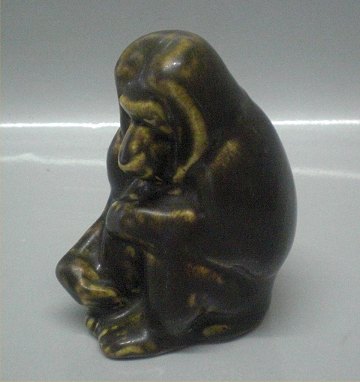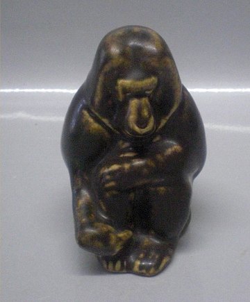 Description: Danish Art Pottery Michael Andersen Abe Bornholm 10 cm Baboon, Monkey Brown Glaze Nice and mint condition