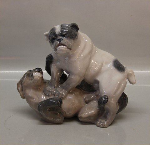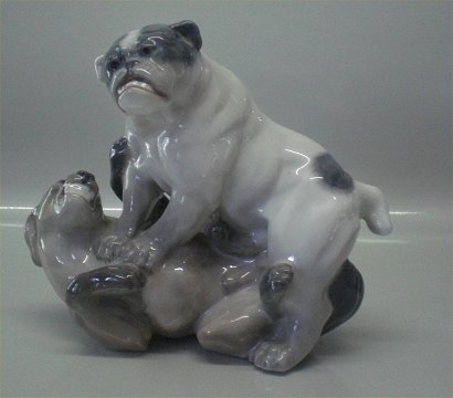 Description: Royal Copenhagen dogs 2326 RC Playing English bulldogs 19 x 22 cm Designed by Knud Kyhn 1923 1. In mint and nice condition English Bulldog and ??