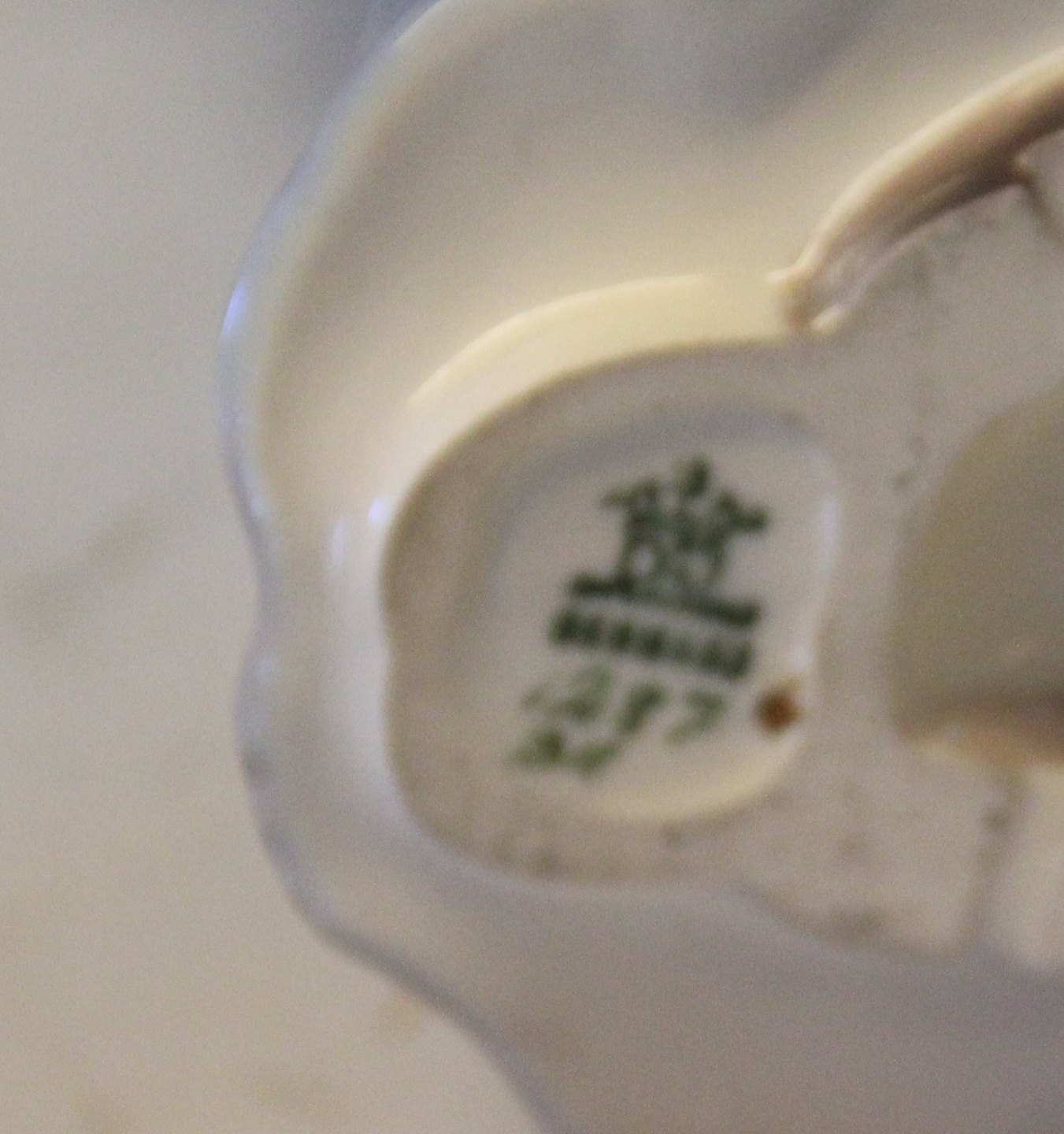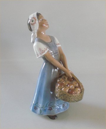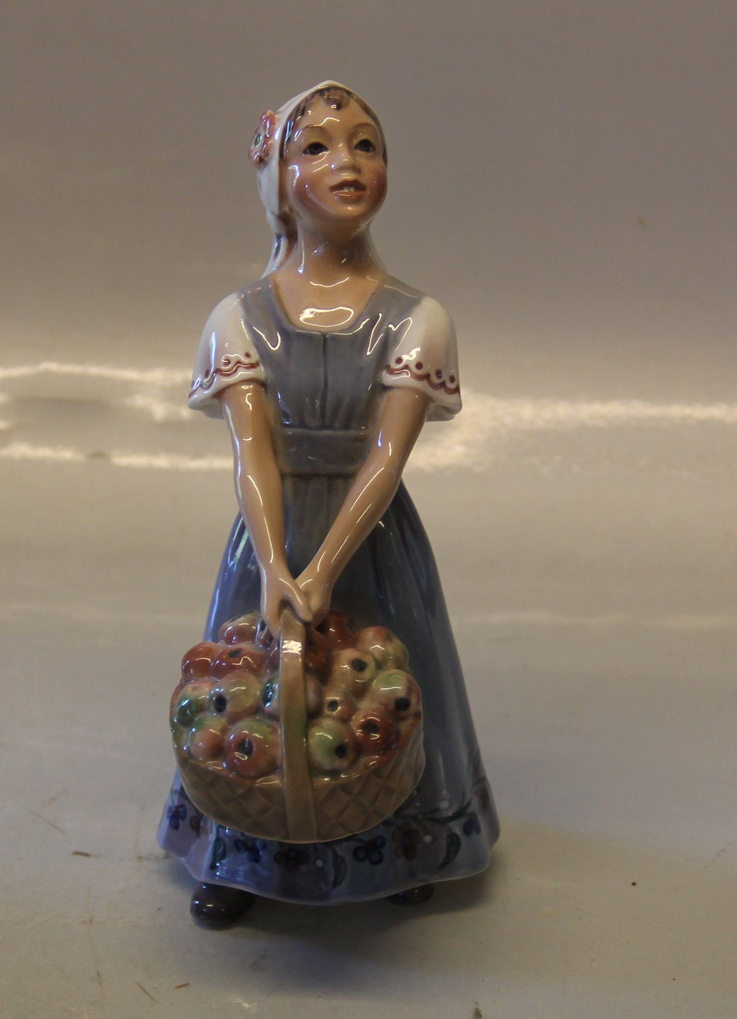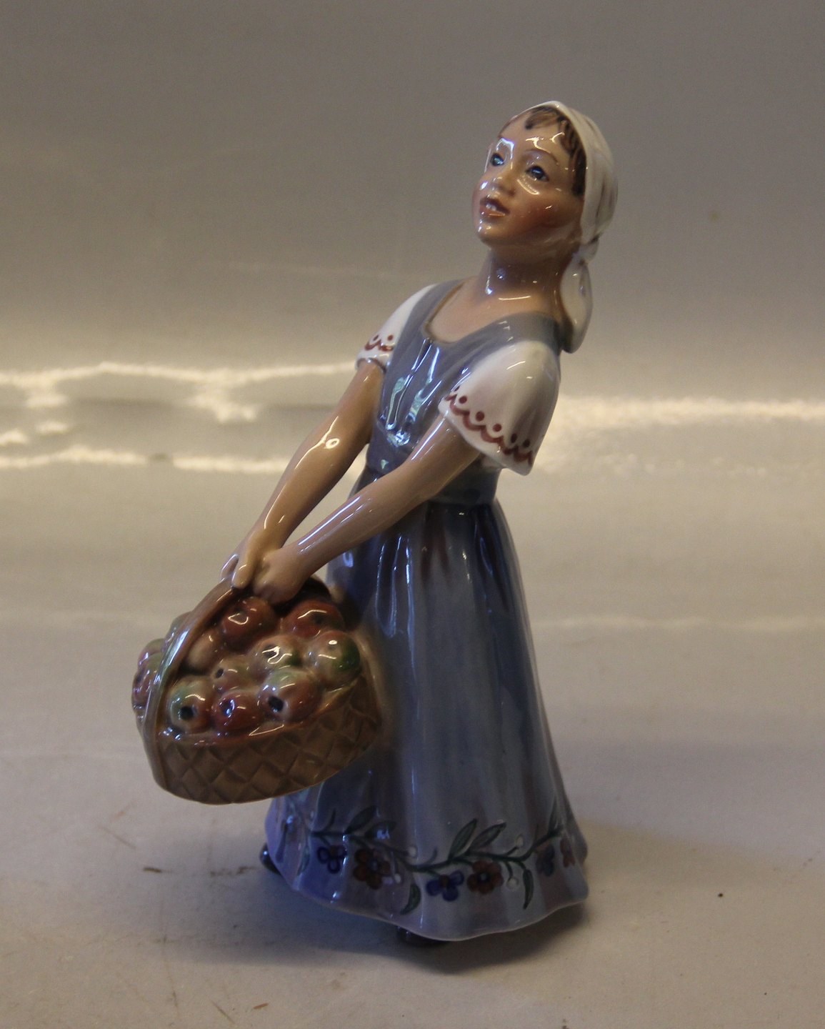 Description: Dahl Jensen 1287 Girl with an apple basket (DJ) 16.5 Marked with the Royal Crown and DJ Copenhagen. In nice and mint condition Dahl Jensen Worked first for Bing & Groendahl B&G from 1897