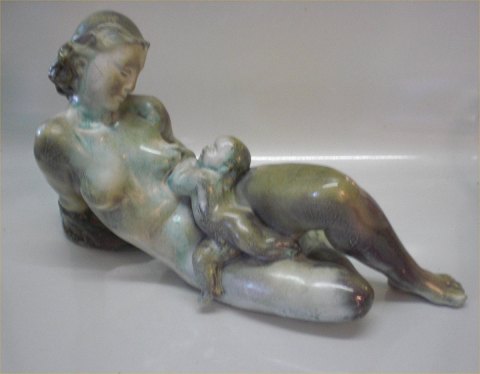 Dansk Keramik Michael Andersen Bornholm Mor med barn ca 23 x 42 cm