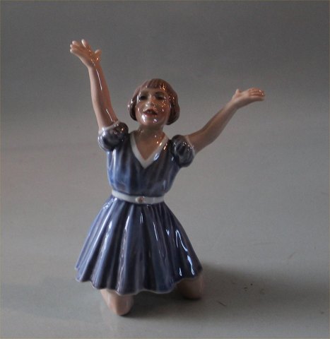 Description: Dahl Jensen 1277 "Ida" girl with raised hand 14.5 cm Marked with the Royal Crown and DJ Copenhagen. In nice and mint condition Dahl Jensen Worked first for Bing & Groendahl B&G from 1897