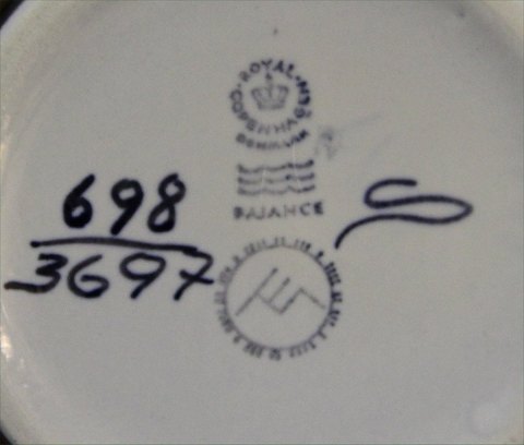 Beskrivelse: Royal Copenhagen Aluminia fajance 698-3687 Aluminia Fajance Ellen Malmer Krus 13.5 cm Baca 1969