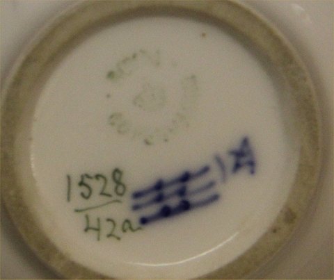 Beskrivelse: 1528-42a Kgl. Lille Art Nouveau Kuglevase 6 x 8 cm med frugtgren & sommerfugl før 1923 fra Royal Copenhagen I hel og fin stand
