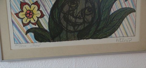 Description: Original Henry Heerup "Rain" Lithographie in colours Signed Heerup and numbered 251 of 500. In Alu Frame 51 x 38 cm