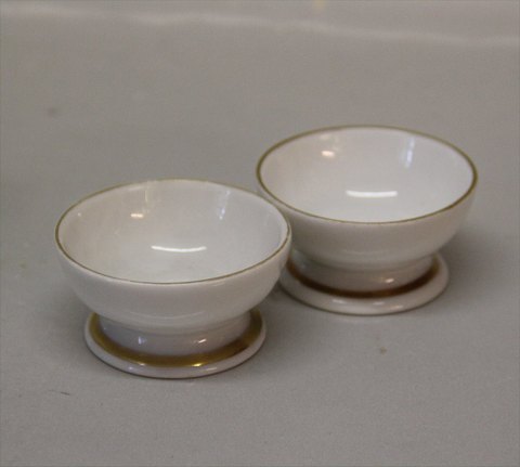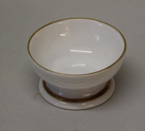 Beskrivelse: Bing & Grøndahl Gulnare med guldkant 055 Saltkar 3 x 6 cm (547) I fin og hel stand.