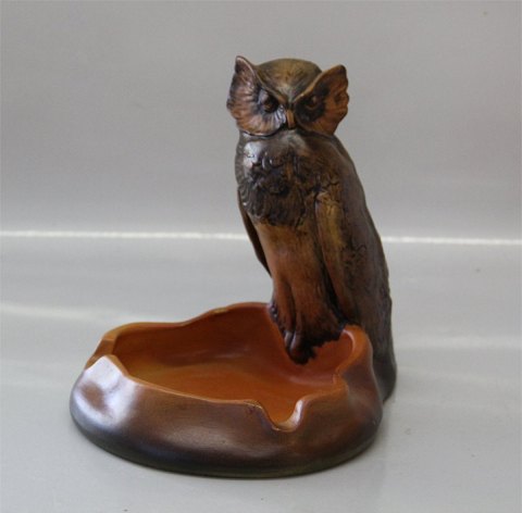 Danish Art Pottery Ipsens 142-7 Owl on dish 17 x 19 cm Niels Norvil pre 1915