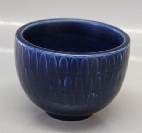 2644 Marselis Blå skål 8,8 x 12 cm rund med mønster af aflange blade, Nils Thorson 1953