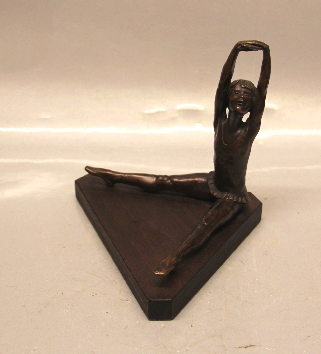 Description: Sitting Ballet Girl Bronze on Triangular stand 18.5 x 22 cm Signed SGK