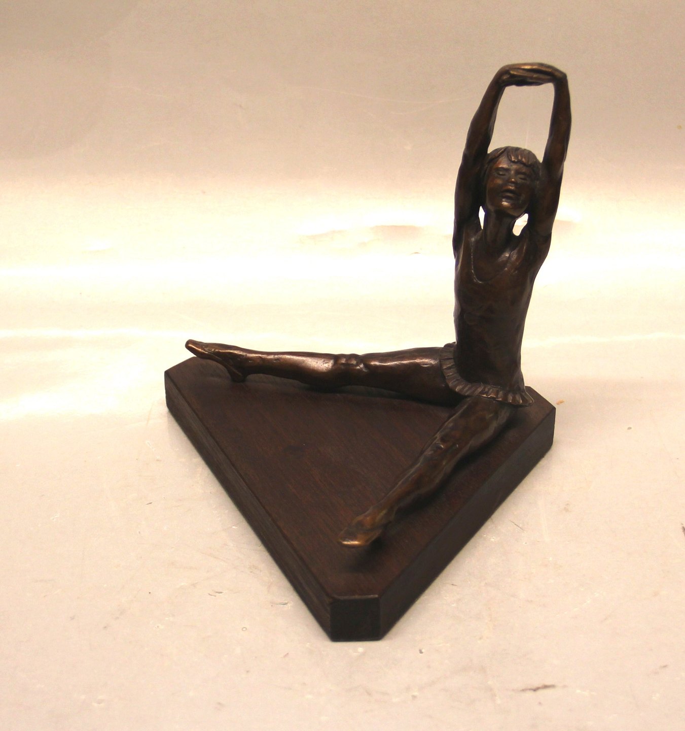 Sitting Ballet Girl Bronze on Triangular stand 18.5 x 22 cm Signed SGK