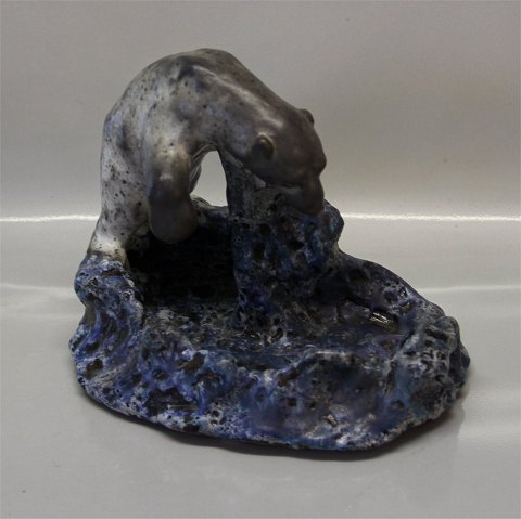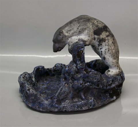 Dansk Keramik Isbjørn på fad Blågrå Glasur Søren Kongstrand 21 x 26