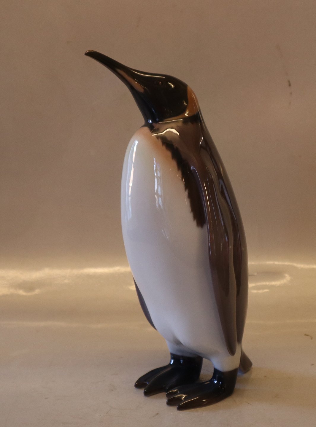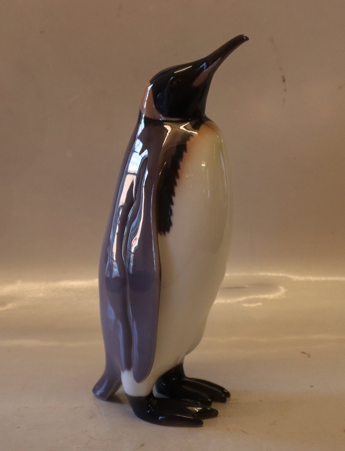Beskrivelse: Bing & Grøndahl fuglefigur B&G 2166 Pingvin 27 cm I fin og hel stand. Armand Petersen Signeret AP