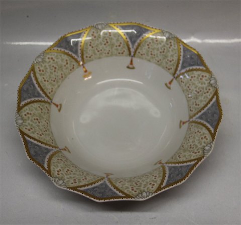 Description: Gray 577 Footed dish 9 x 24 cm (8530) The Royal Copenhagen Fairytale Pattern was designed by Finn Næss-Schmidt and the actual drawings for the transferware were designed by Jørgen Nielsen . The Fairytale service was decorated on the Angular form in both Grey and Terracotta versions so that all pieces would mix and match. At the time of production it was the most complex multicolor transferware ever produced by the Royal Copenhagen Factory.