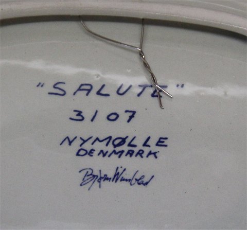 : Bjørn Wiinblad 3107 Nymølle Platte 22 x 28 cm "Salute " Blå Fajance I fin stand