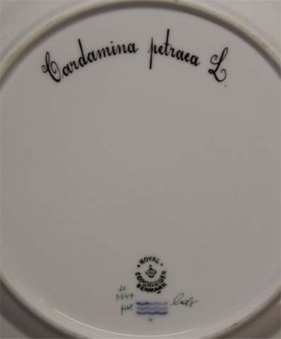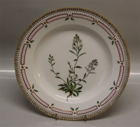Description: Royal Copenhagen Flora Danica 20-3549 Traditional Dinner Plate: Gardamina petraea L . New # 624 10" (From the year 1959). Floral decoration on pearl pattern with gold rim. Factory first and in nice and mint condition