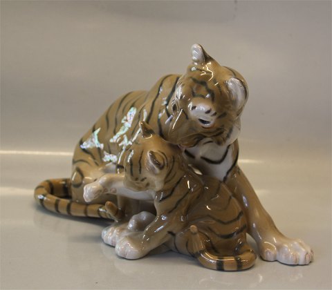 : Bing & Grøndahl B&G 1948 Tiger med unge 18,5 x 30 cm I fin og hel stand. 2. sort