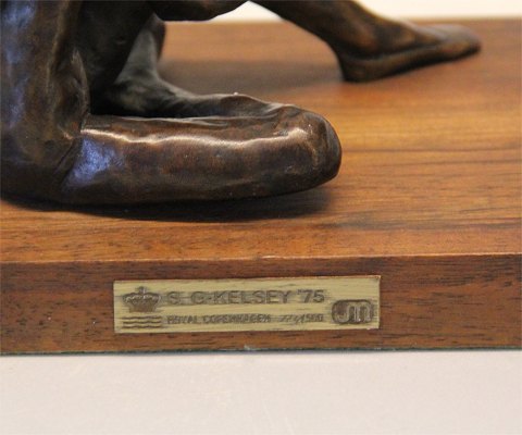 Description: Sterett-Gittings Kelsey Bronze Ballet girl sitting on wooden stand 14 x 11 x 21 cm no. 114 of 500 Royal Copenhagen 1975 Royal Copenhagen 1975 Sterett-Gittings Kelsey was born in Greenwich, Connecticut in 1941, and was graduated from the Rhode Island School of Design with a B.F.A. in Sculpture in 1964. She is a remarkable American Sculptor who primarily works in bronze. Her beautiful fluid figures have been shown in the United States and Europe and proudly owned by both private collectors and museums. Her work is represented in museums all over the world, including the National Art Museum of Sport in Indianapolis and the Hakone Open-Air Museum in Tokyo, and she has also worked on a number of large decorative projects. Kelsey is the leading sculptor of Dance in the world today and she has proclaimed: "To capture the Essence of Dance in Bronze has become a purpose in my life.” Sterett-Gittings Kelsey has frequently been compared to Degas in that, like him, she has an amazing feeling for human anatomy and is able to create life, whether working in bronze or porcelain. In 1975 Royal Copenhagen invited Sterret Kelsey to come and work with them. She designed several porcelain figurines and the first bronze figurine collection in the 200 years of Royal Copenhagen: First a series of 6 dancers, followed by several sport and gymnastic sculptures on marble stands. All issued in a limited edition.