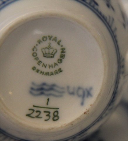 Kongelig Dansk Porcelæn Musselmalet 2238-1 Kop og underkop riflet hotel