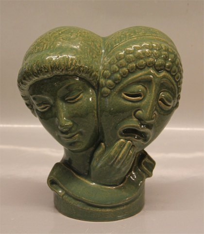 Ej blot til lyst! Svend Lindhart Buste med masker Grøn glasur 23 x 21 cm Melpomene