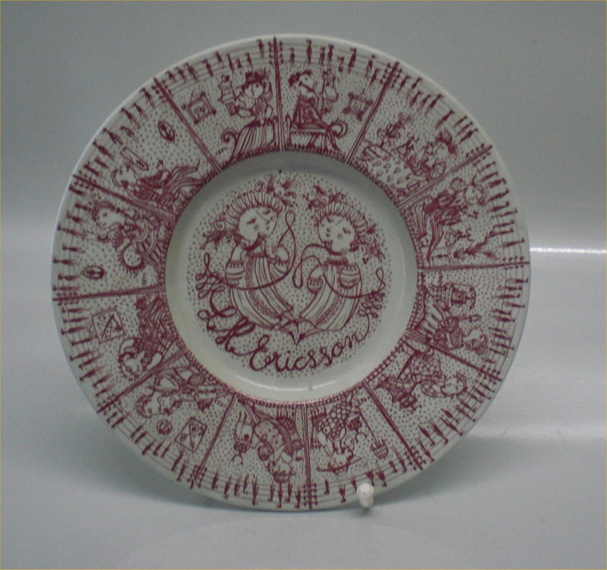 Description: Nymoelle LM Ericson Red Art Faience 22 cm Bjorn Wiinblad Nymolle Denmark faience and pottery