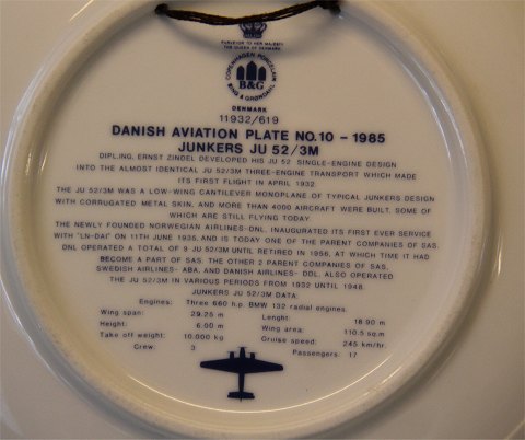 : Aviation Plates Royal Copenhagen and B&G - Airplanes plates