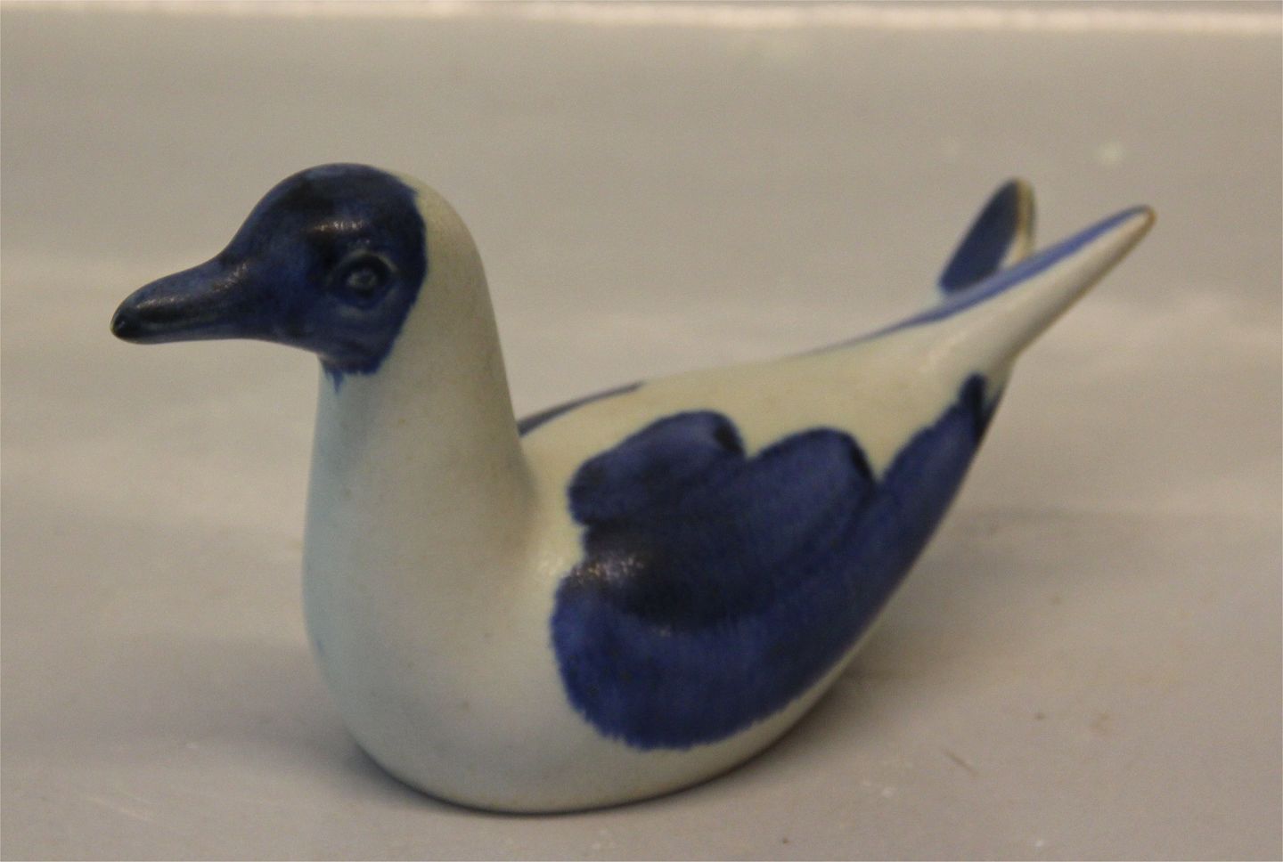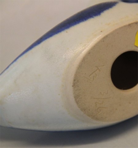 : Knud Basse Blå og hvid andefugl / mage 10 x 18 cm KB 3-26 Keramik