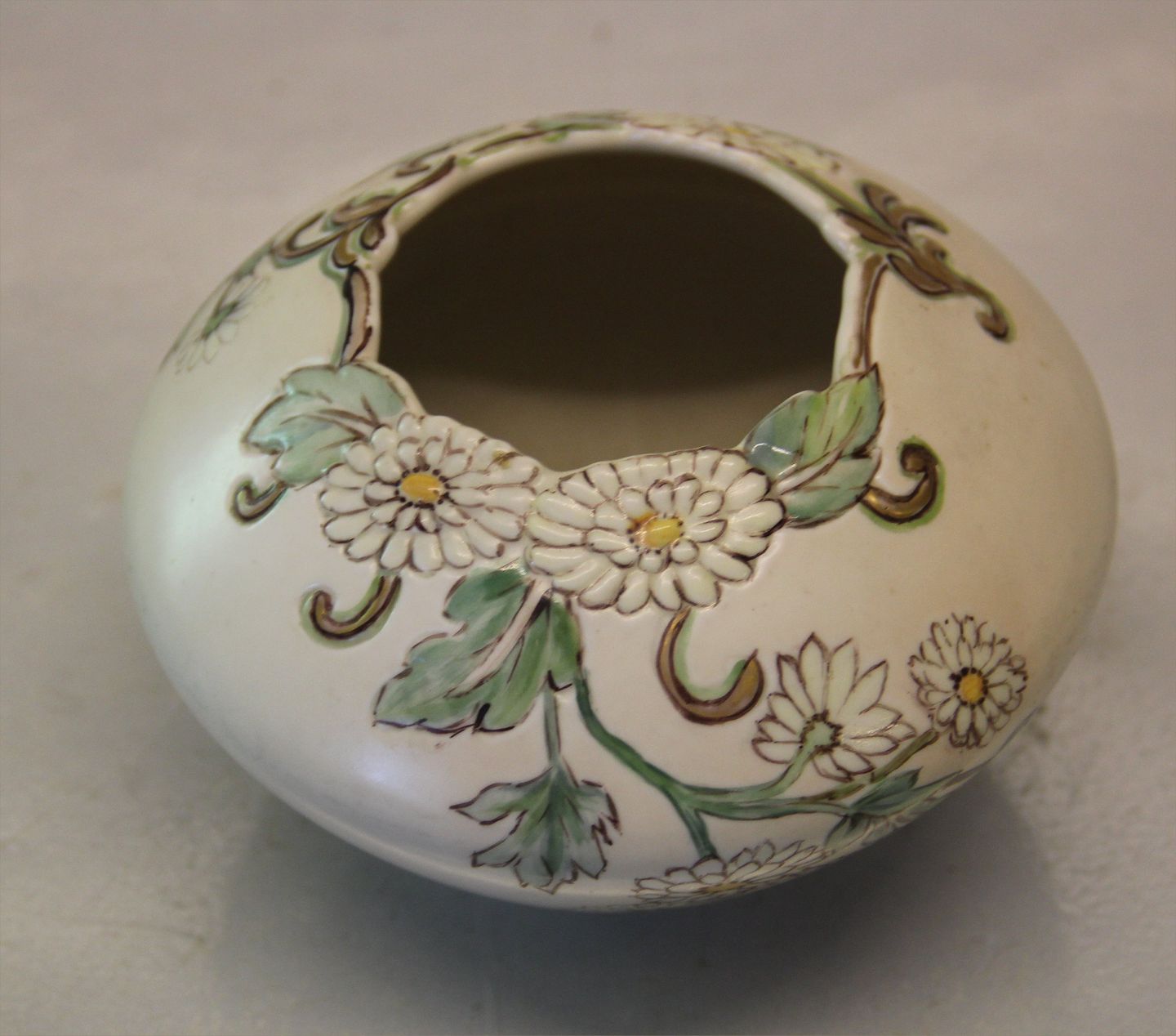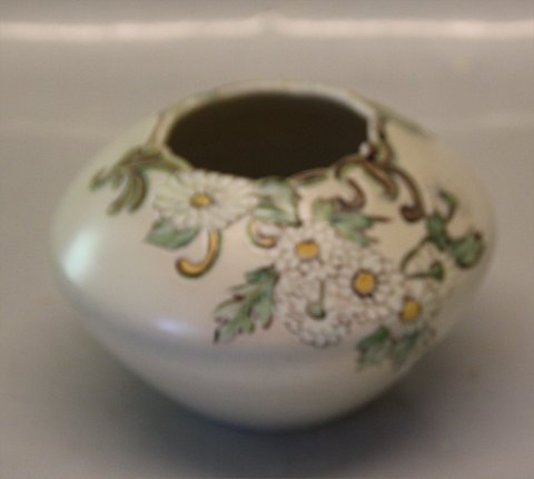 B&G Porcelain B&G 73-24 At Nouveeau Vase with Flowers in relief Signed Fanny Gaarde Decorated with colours ca 9 x 12.5 cm
