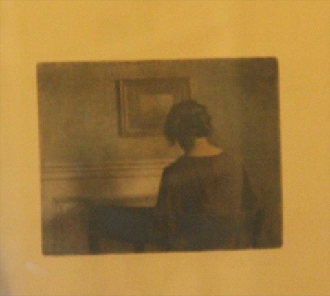 Peter Ilsted, painter and graphics artist (1861-1933) He was one of the foremost turn of the twentieth century artists in Denmark Known from many etchings, paintings and about 70 colour prints and mezzotints. He was one of a group of Danish artists known for works of sun-filled rooms utilizing subtle colors, simplistic interiors inhabited with one or more figures. Ilsted, however, was the only member of the "Copenhagen Interior School" who focused on printmaking. Mezzotint, from the Italian mezzotinto ('half tint')