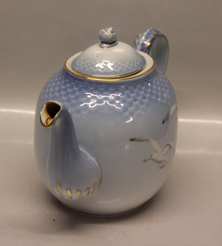Beskrivelse: Bing & Grøndahl Mågestel med guldkant 238 Stor tekande 17 x 26 cm 1.4 l. (656) . I hel og fin stand