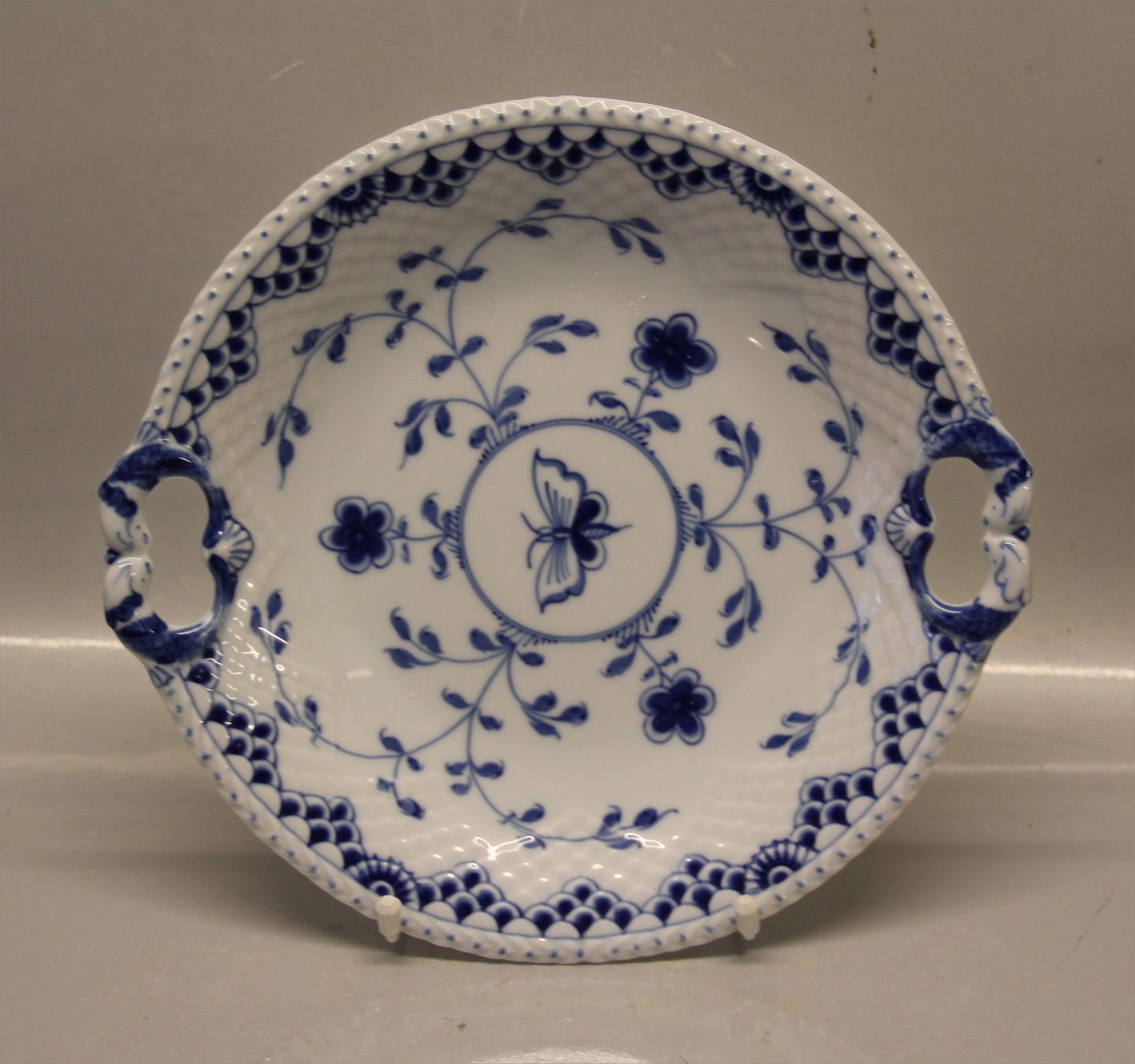 101 Dish with handle 26,5 cm (304) Bing and Grondahl Dickens Blue Fluted with butterfly with half laces. Marked with the three Royal Towers of Copenhagen. Bing & Groendahl In mint and nice condition