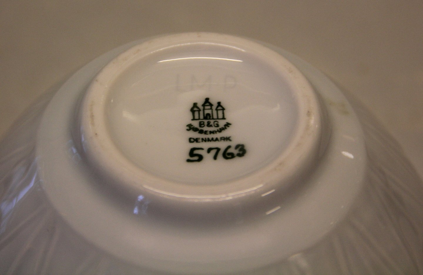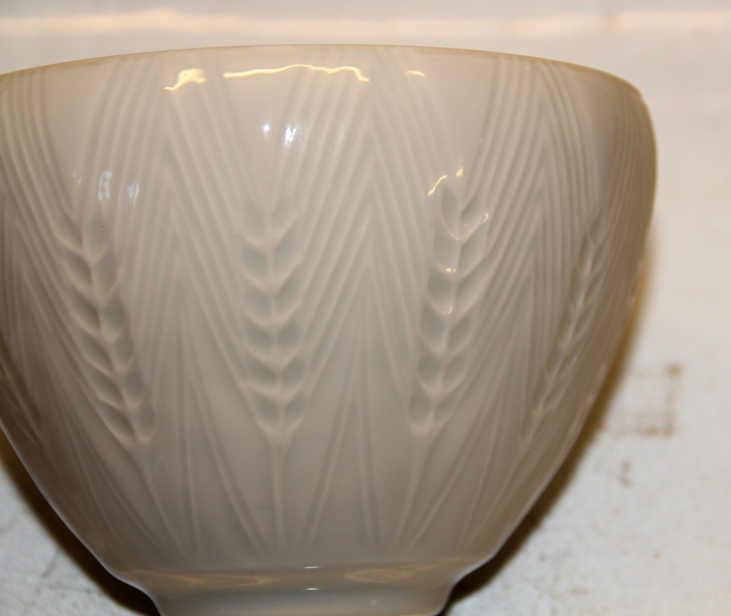 Description: Bing and Grondahl B&G 5763 White Bowl with cornheaf relief 10.5 x 15 cm Lisbeth Munch-Petersen LM-P Marked with the three Royal Towers of Copenhagen. Bing & Groendahl In mint and nice condition