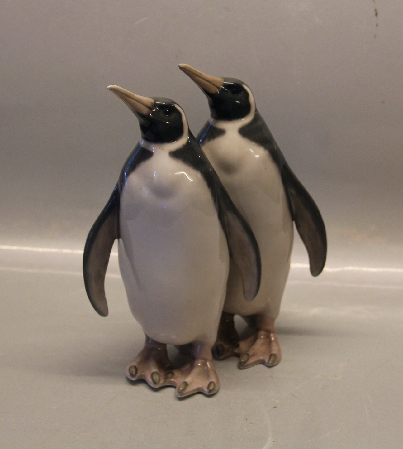 Beskrivelse: 0417 a Kgl. Dobbel Pingvin TH. Madsen 1902 24 cm, Duo fra Royal Copenhagen I hel og fin stand Malernr 164 præ 1923 Pingviner