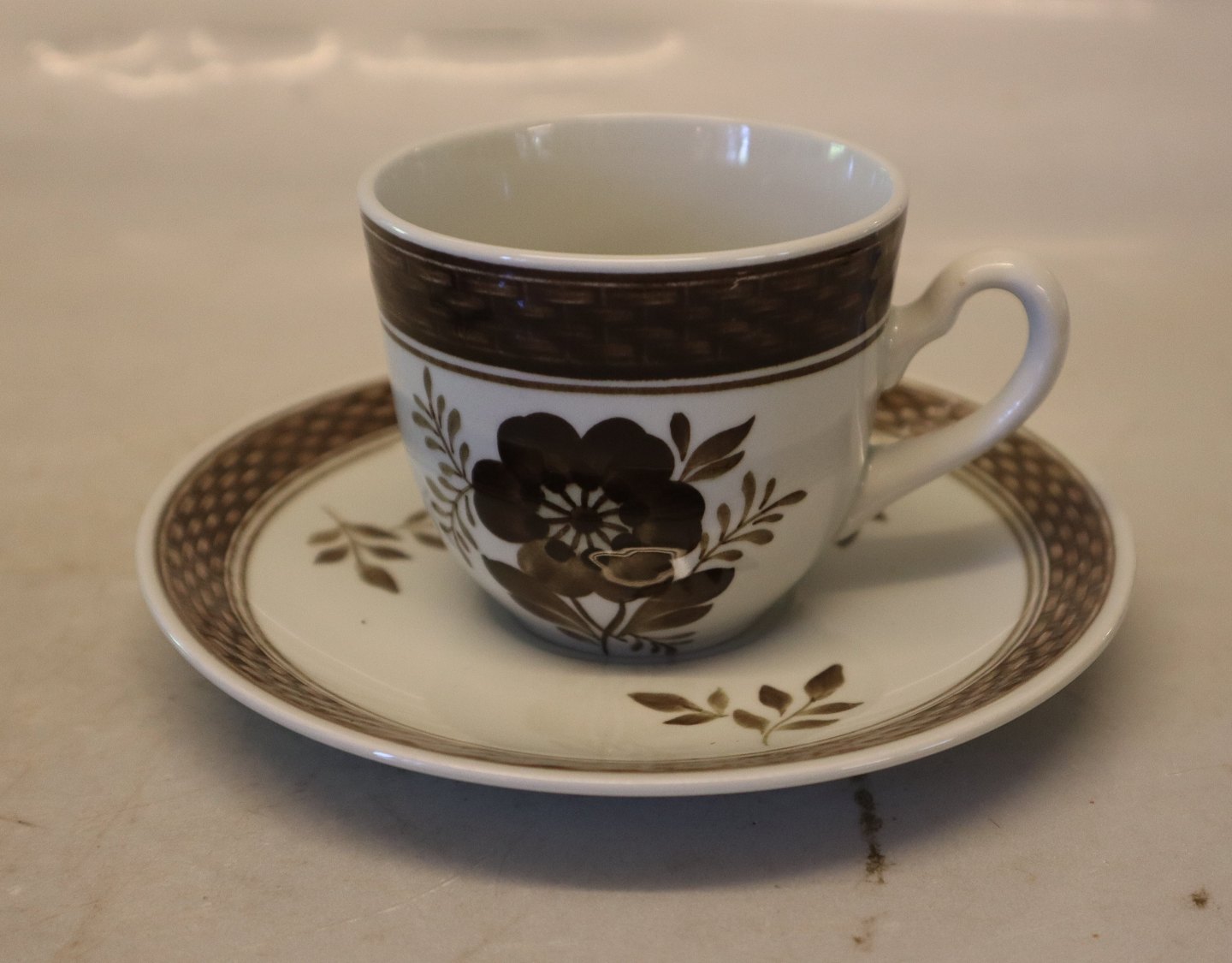 0992-45 Lille kaffekop og underkop 7 cm (16 cl) Royal Copenhagen Aluminia Brun Tranquebar I fin og hel stand