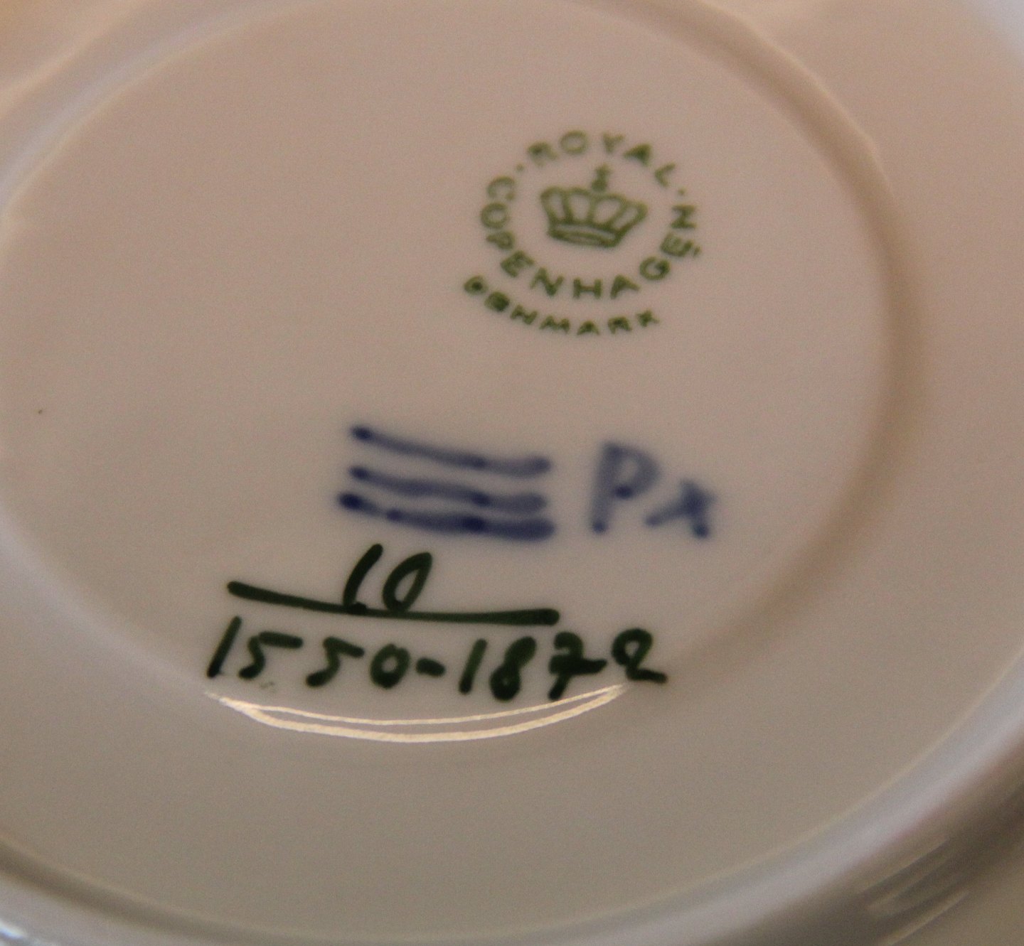 1872-10 Bouillonkop og underkop 16.5 cm (107-108-109) Kongelig Dansk Porcelæn Blå Blomst Svejfet I fin og hel stand Suppekop