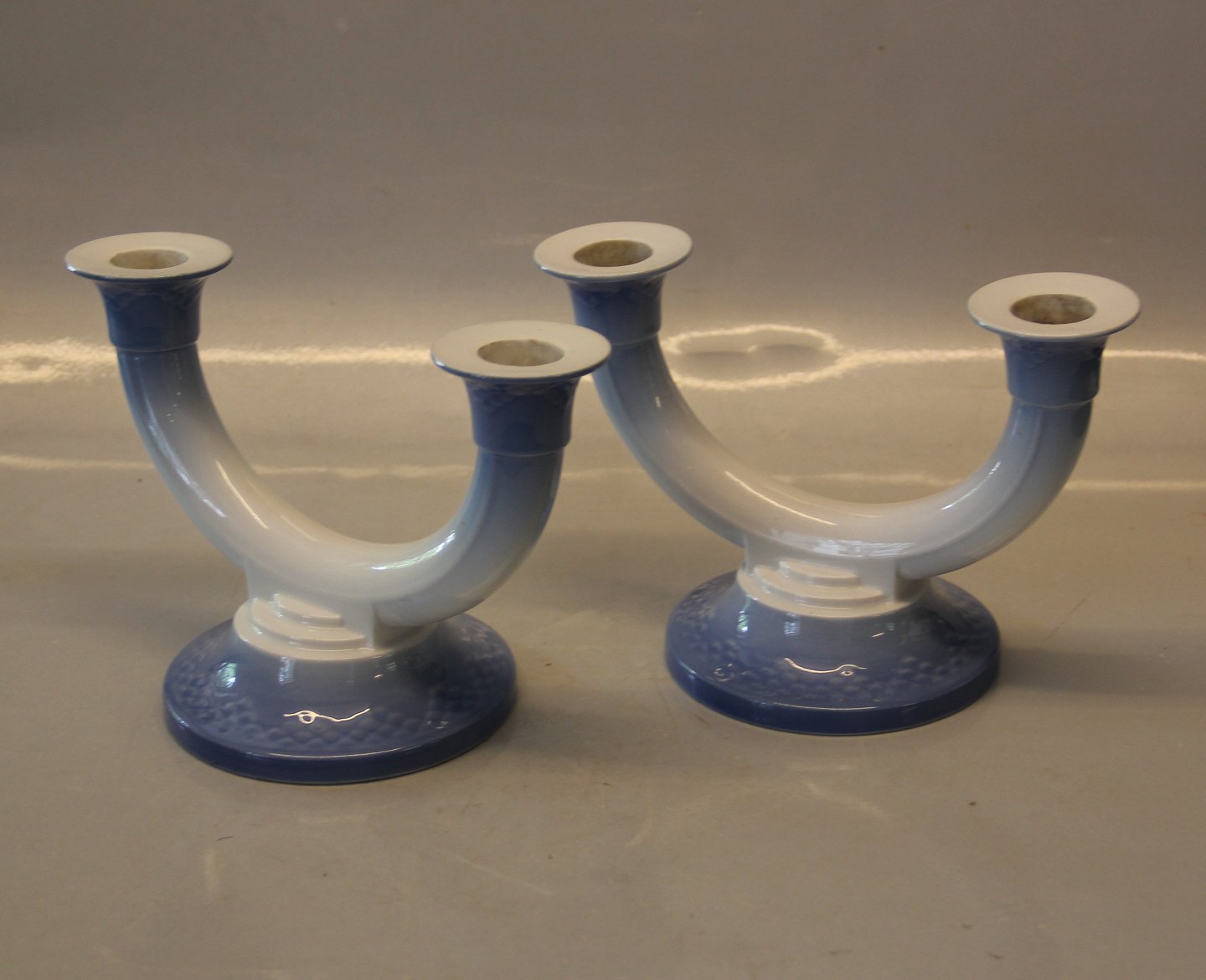B&G Blue Tone Seashell 235 Two armed candlestick 13.5 cm