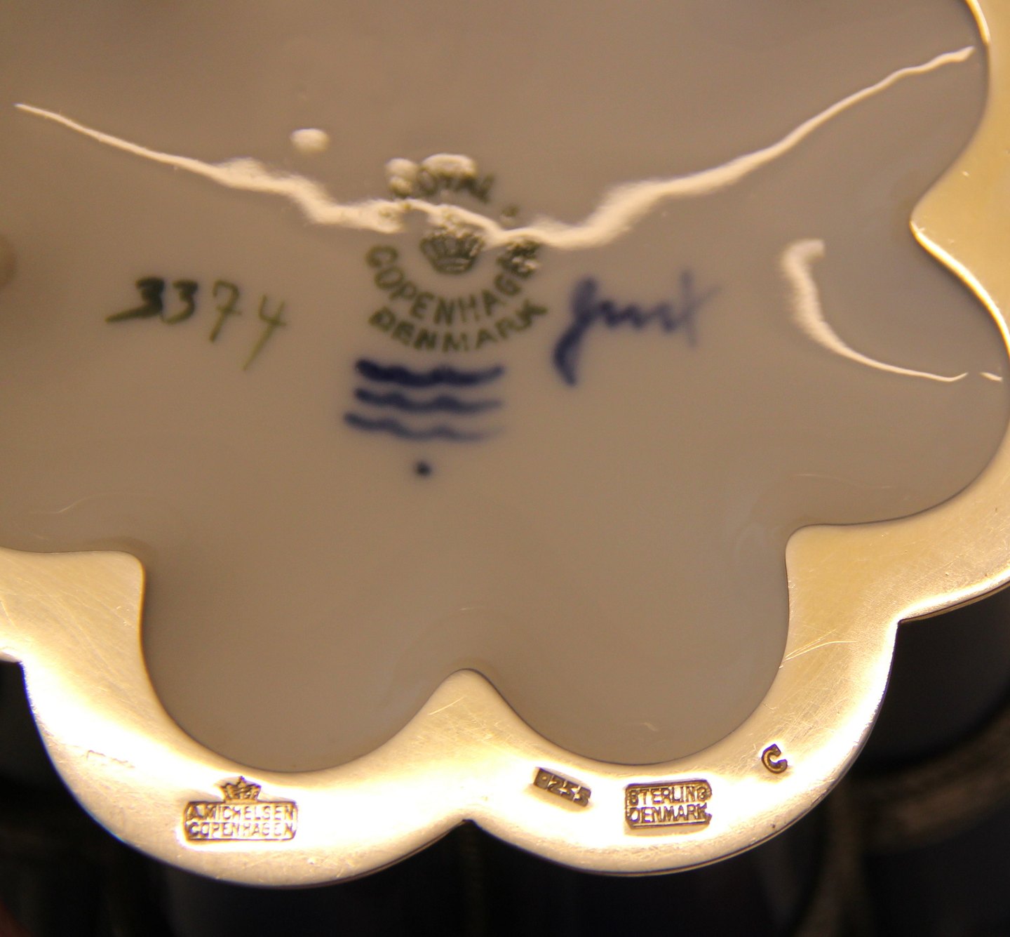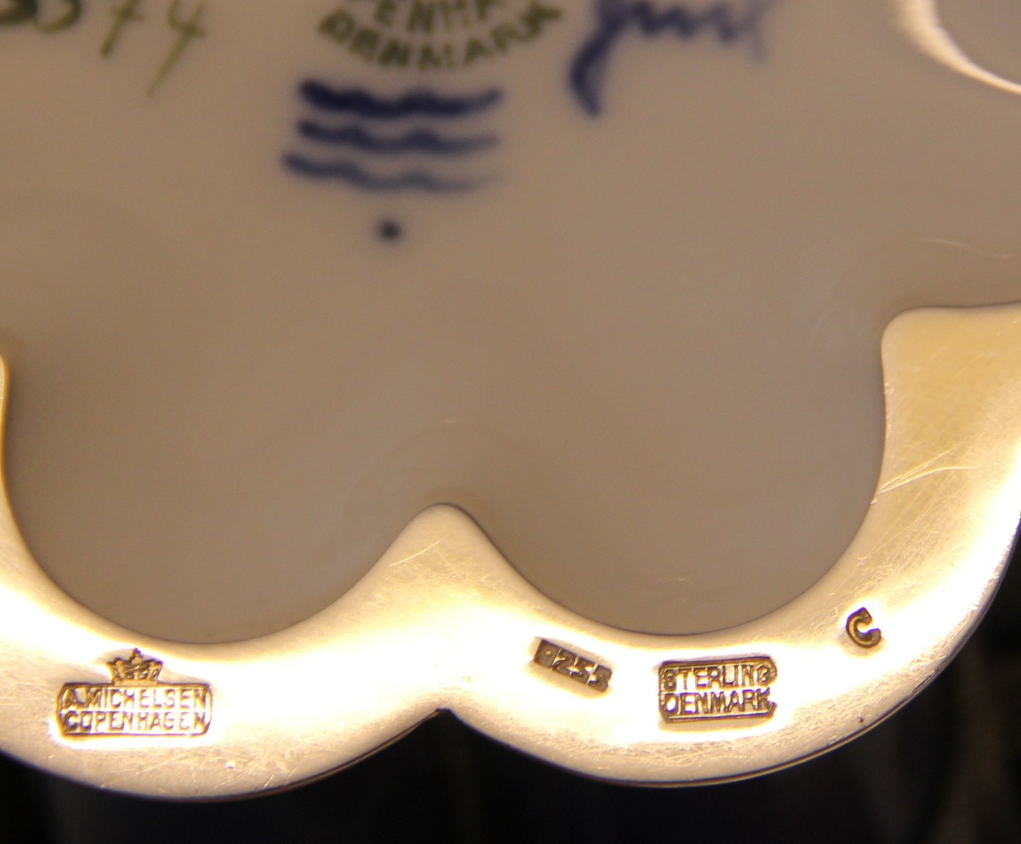 Beskrivelse: Kgl. 3374 Kgl. Margrethebæger Blå 12 x 14 cm Sølvmontering Sterling Silver fra Anton Michelsen Copenhagen fra Royal Copenhagen I hel og fin stand