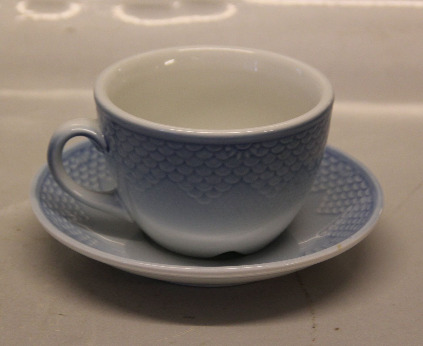 0748 Stor Morgenkop Kaffekop 6.5 x 10 cm (1024) Bing & Grøndahl Blå tone eller musling Hotelporcelæn