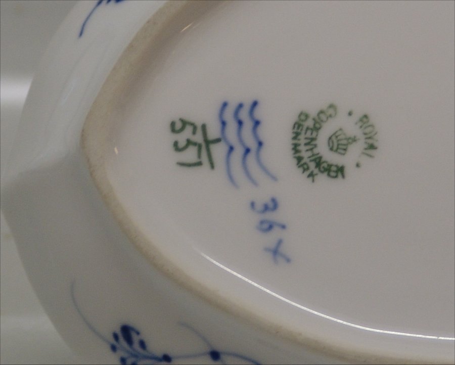 551-1 Fad, ovalt, 12,5 x 18 cm Kongelig Dansk Porcelæn Musselmalet Halv blonde. I fin og hel stand Blue Fluted half lace