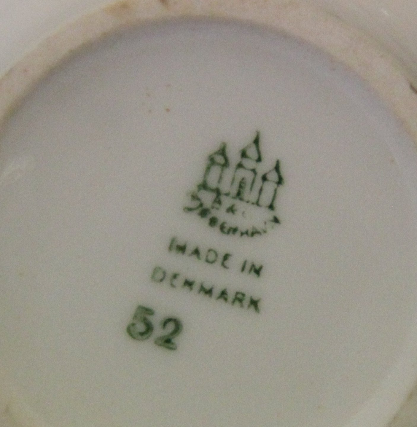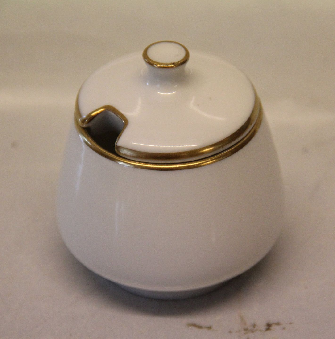 052 c Sennepskrukke 8 cm (551) Vega B&G med smal guldbelægning på inderkanten . Form 674 er formgivet af Sigward Bernadotte. Denne form findes i hvidt, med bred guldkant (Gylden Sol), med grønt og guld (Perseus), med rødt og guld (Herkules) og beige og guld (Norma).