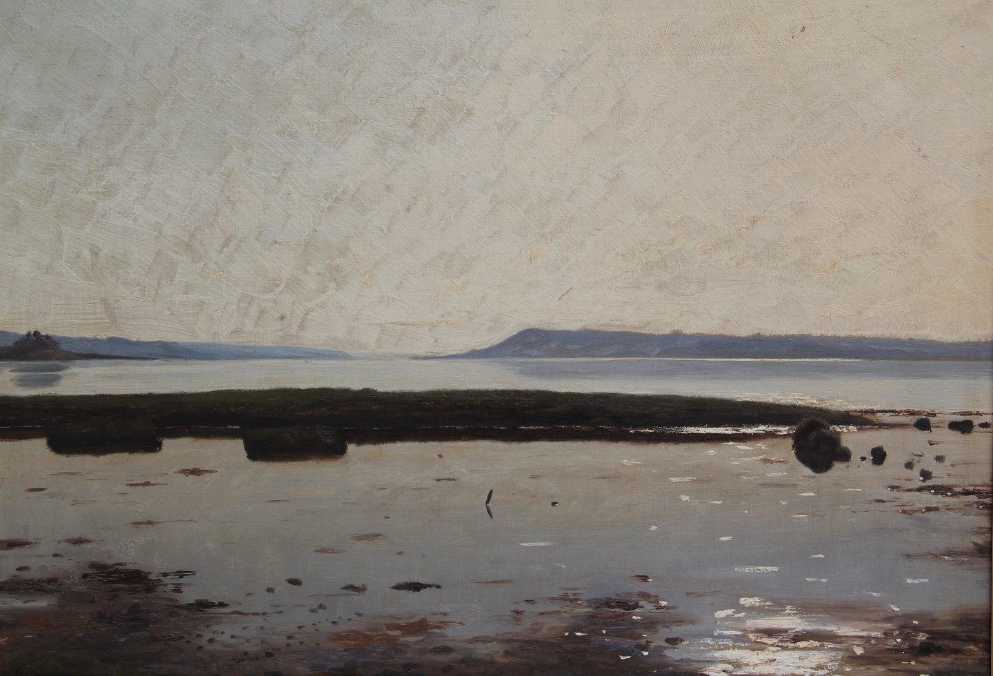 Painting Gunnar Bundgaard Mariager Fjord Oil on Canvas in Golden Frame 66 x 84 cm