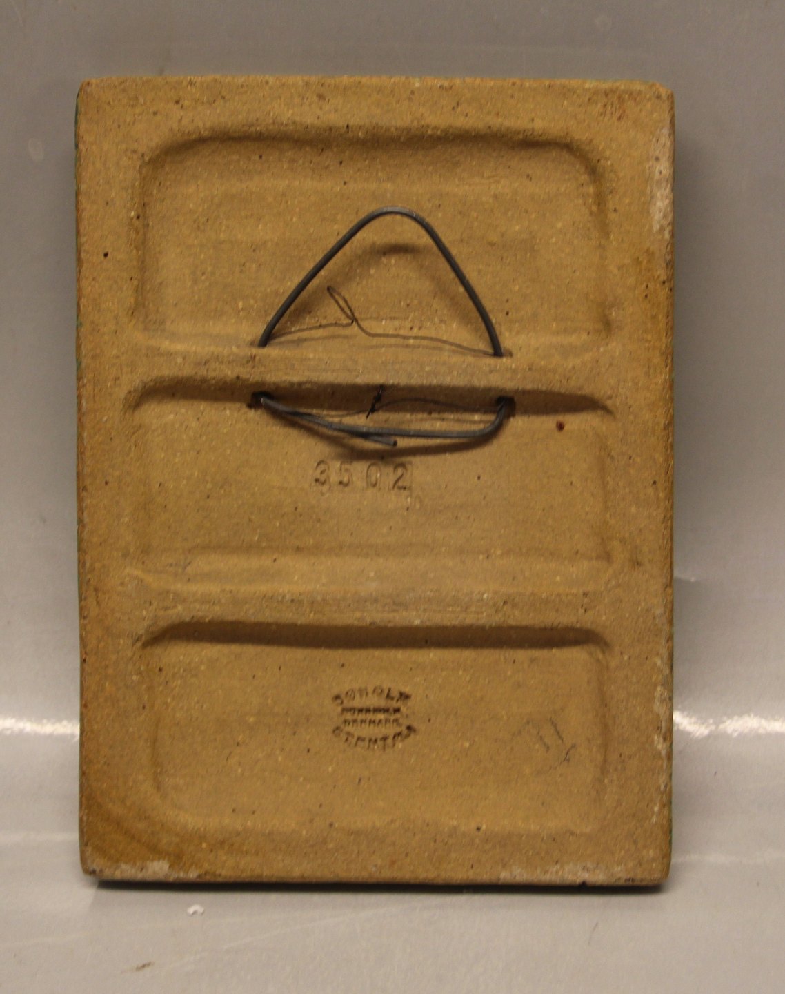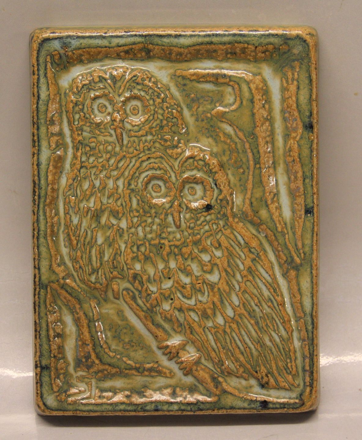 : Søholm Relief 3502 To kirkeugler 16 x 21 cm grøn glasur