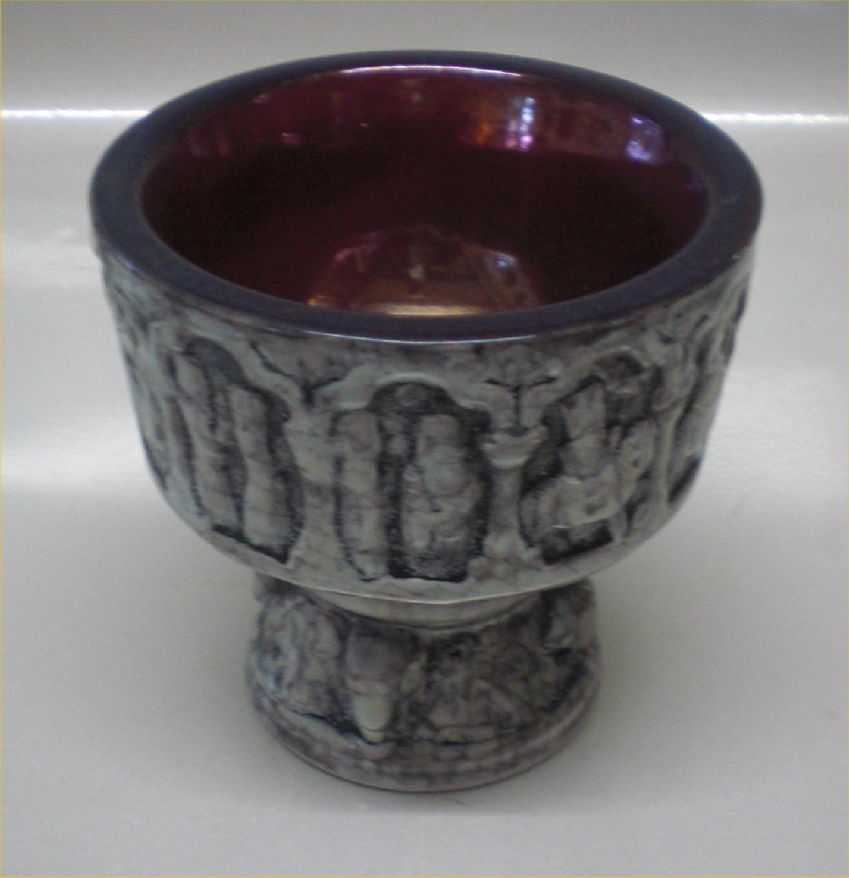 Description: Michael Andersen Bornholm Baptism Cup 12 x 12 cm Grey glazed - red lustre glaze inside