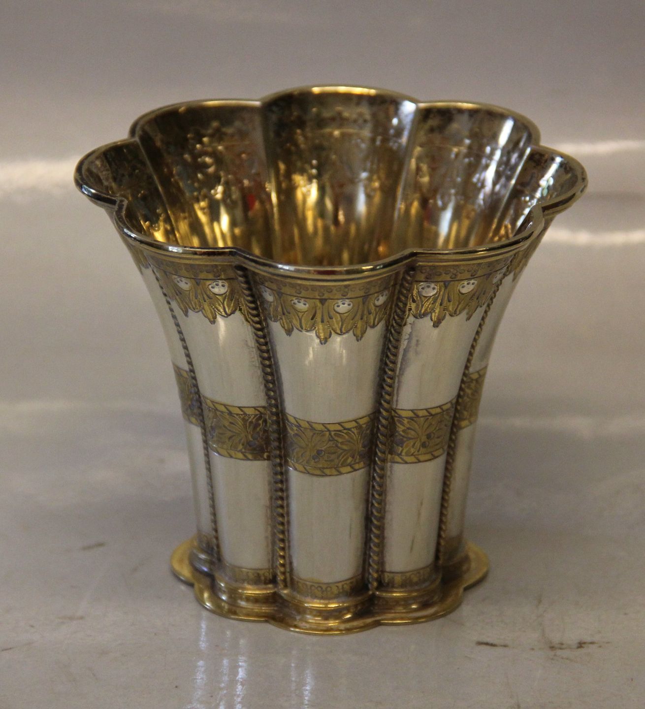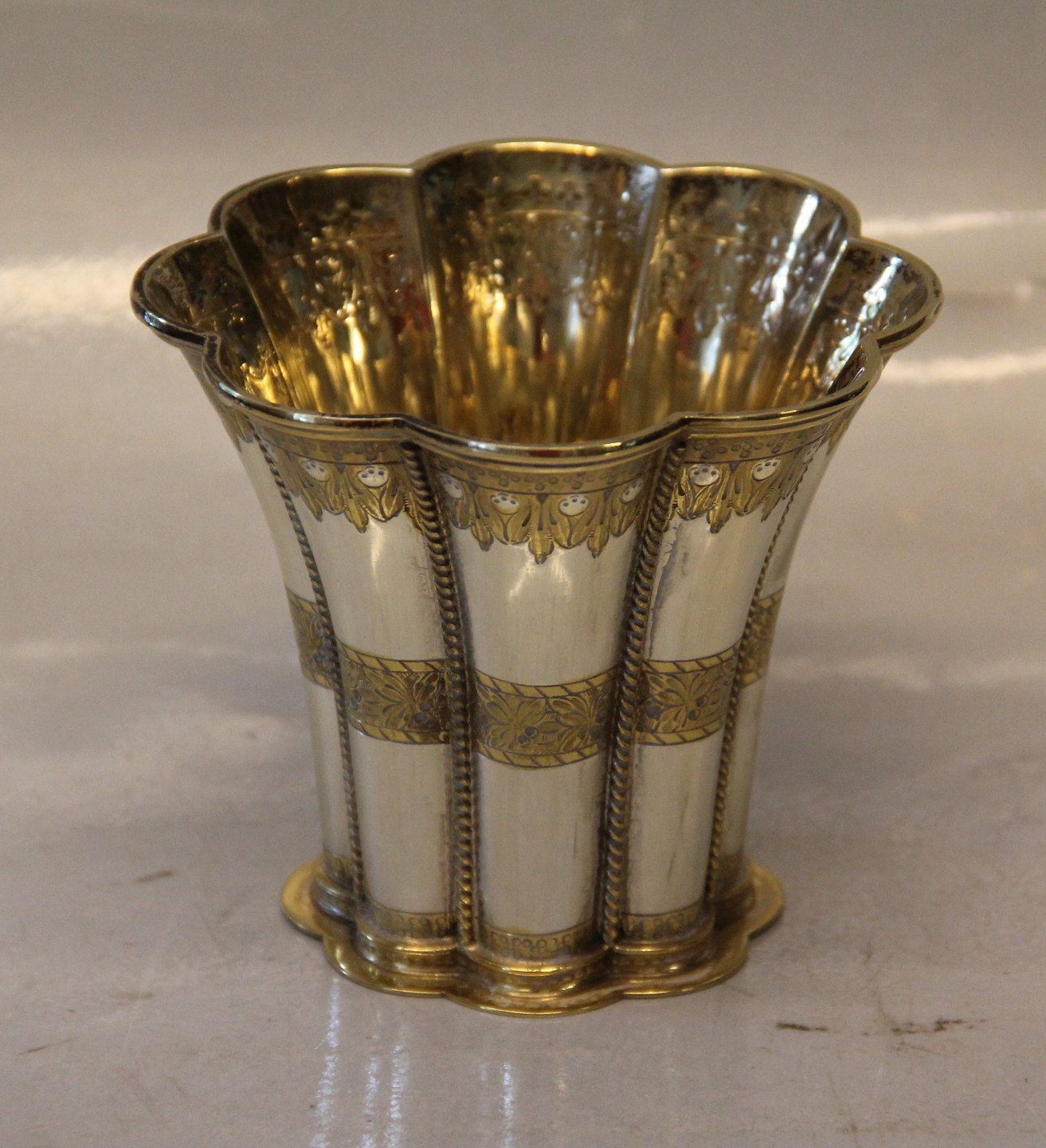 Beskrivelse: Margethebæger i sølv 9 x 10.5 cm ca 210 gram Stemplet 830 S Sv.T. Svend Toxvær forgyldt i fin stand