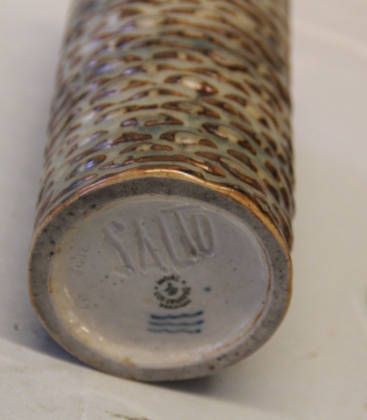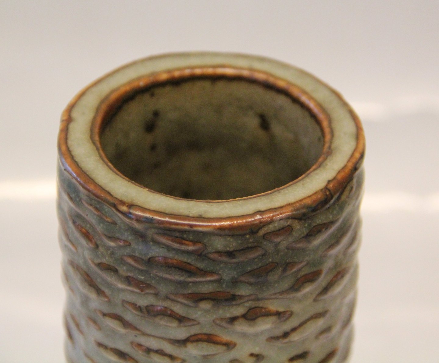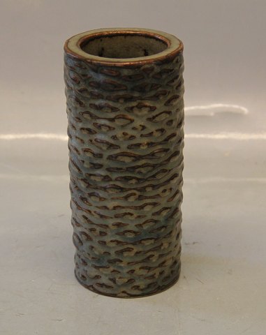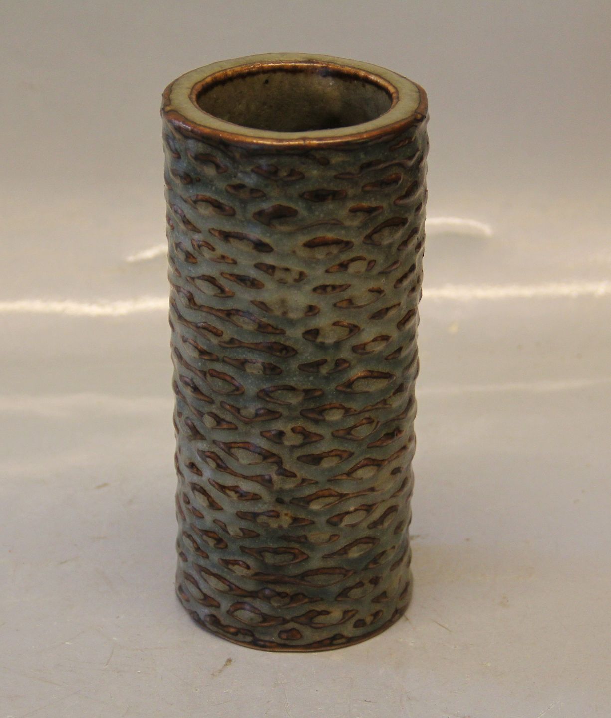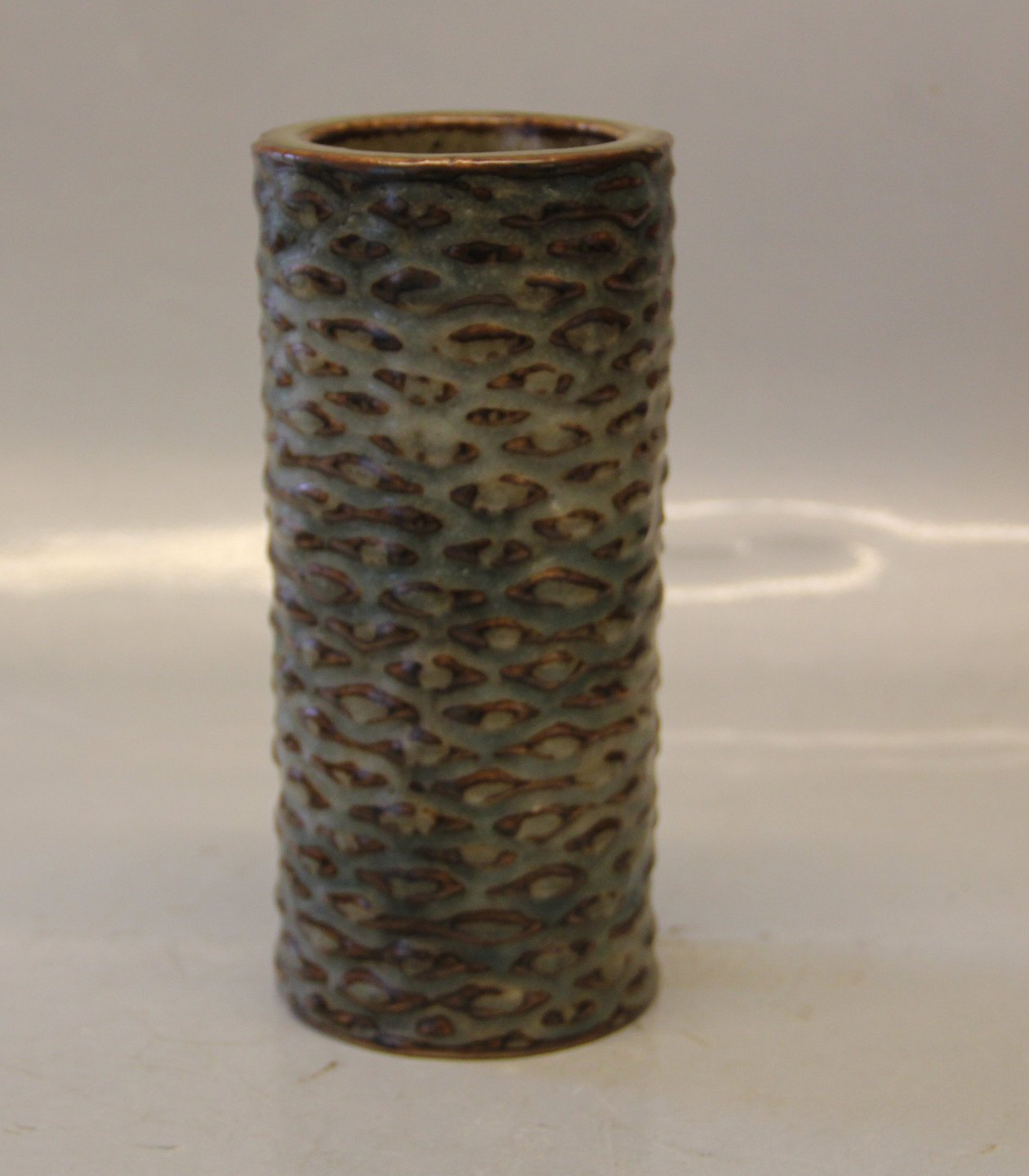 Royal Copenhagen Art Pottery Salto vase cylindric with relief 17 x 8 cm green brown glaz